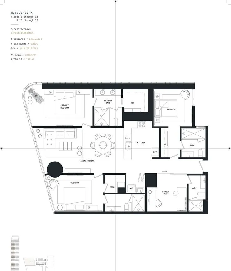 con distribuciones de uno a tres dormitorios y de dos a cuatro baños con estudio.